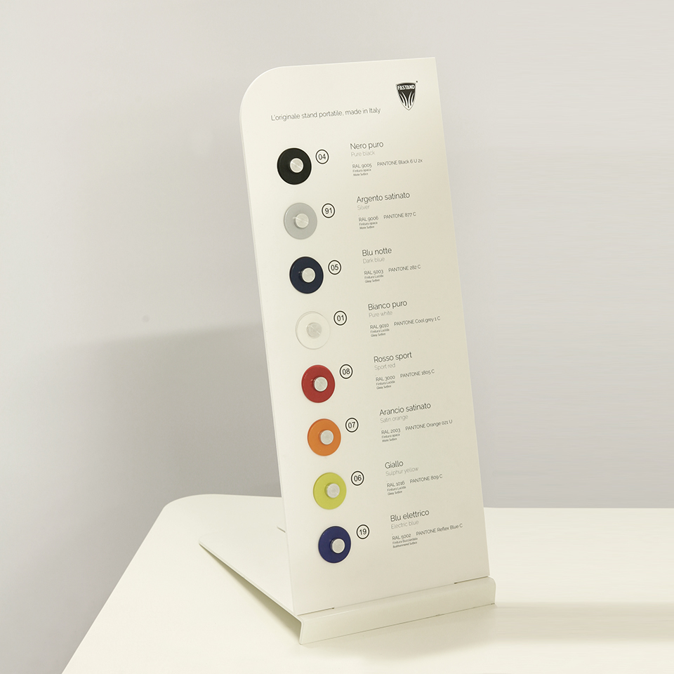 На панели мы также напечатали, помимо названия, ссылки на цвета RAL и Pantone, чтобы ускорить выбор.
