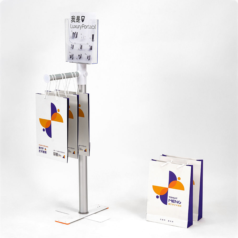 Благодаря этому держателю-шопперу можно легко и аккуратно разместить фирменные пакеты или сумки, создавая большее впечатление на посетителей выставки.