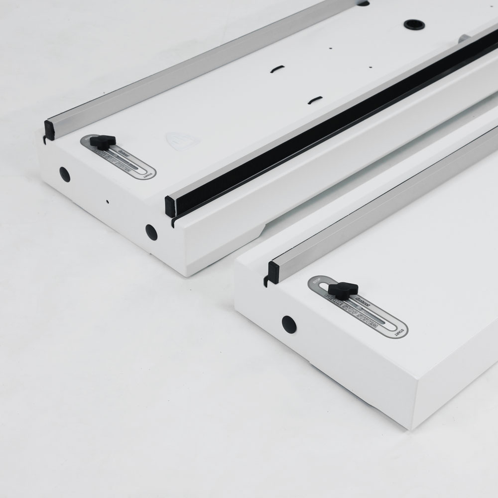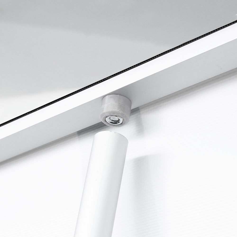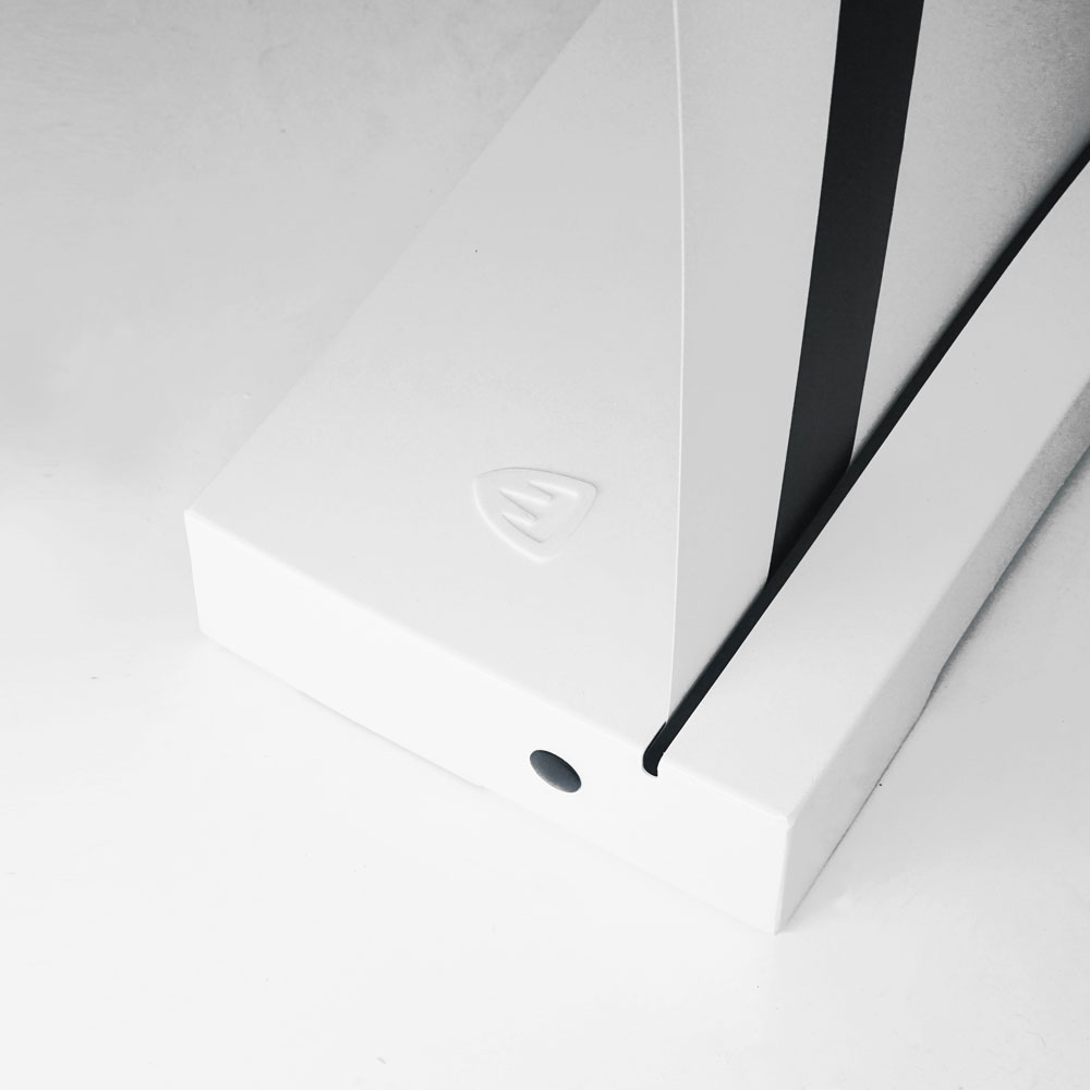 Классический металлический крючок заменен этой системой скольжения. Особенность заключается в том, что при сдвиге вперед механизм входит в фиксатор трубки, блокируя вращение. Кроме того, он используется во время эксплуатации роллерного стенда для регулировки наклона графического полотна, что обеспечивает безупречный вид дисплея и абсолютное совершенство формы.